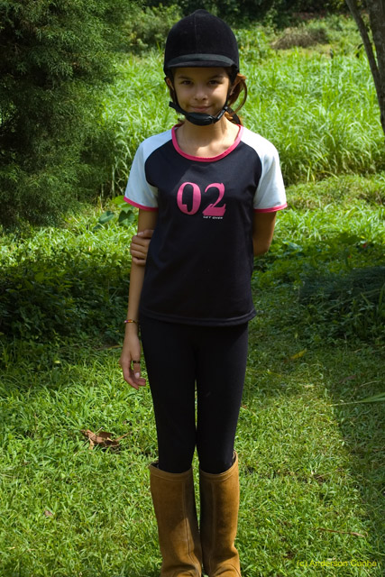Bebel pronta para sua primeira aula de equitação.. ai que medo ! he he