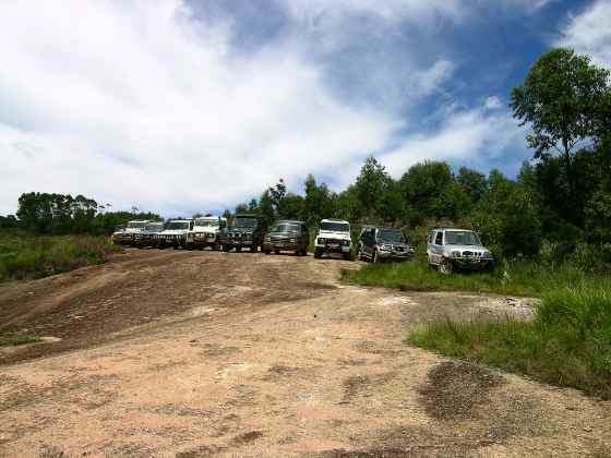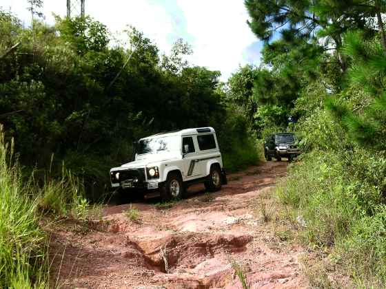 Para os jipes, a pequena subida é motivo de diversão geral... algumas viaturas no comboio não têm pneus lameiros, aumentando ainda mais a expectativa de uma atolada... mas ninguém "agarra" e seguimos adiante, pois nosso cronograma está atrasado para as surpresas do Jurassic...