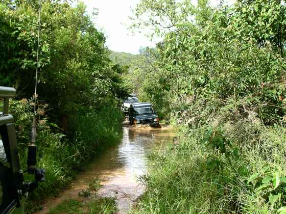 O céu começa a ficar escuro, anunciando chuva, para alegria dos jipeiros... após uma rápida parada no "engordador" da represa, logo adiante a trilha se fecha...