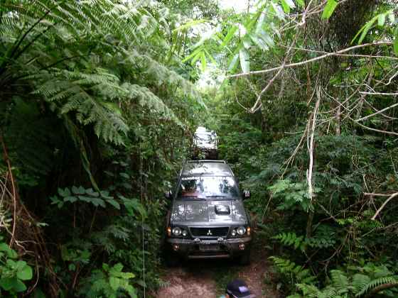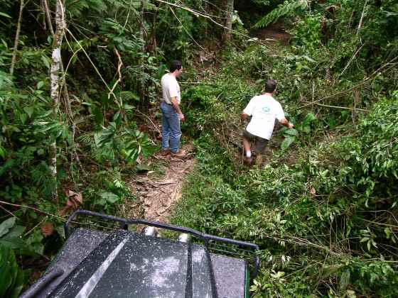 Nos sentimos no meio da floresta amazonica, e alguns galhos impedem o comboio de seguir... facão e machado na mão !