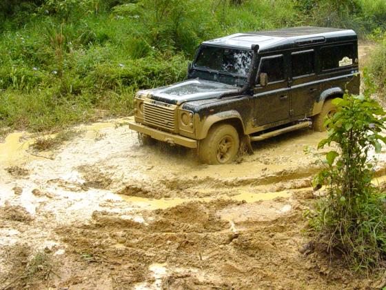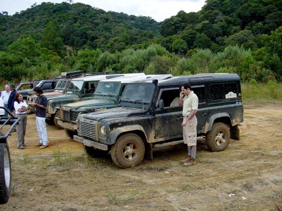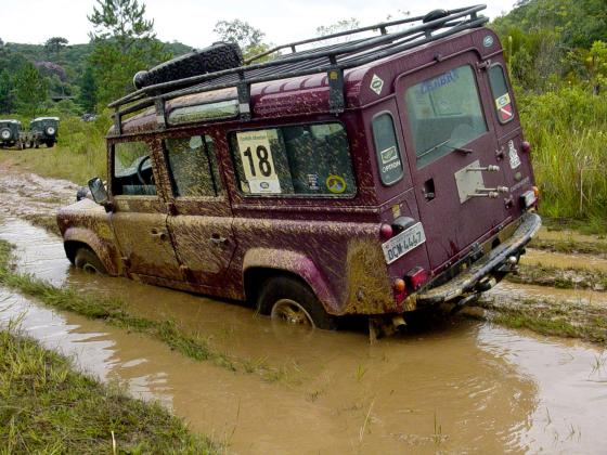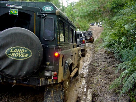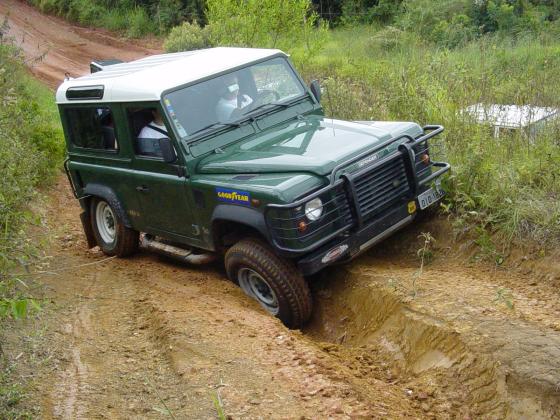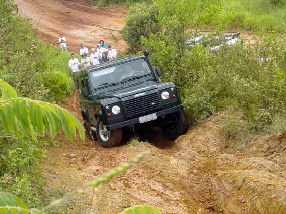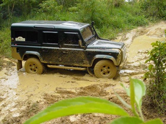 Já tinhamos feito o curso do João Roberto, também proprietário de um Defender 110 equipado com pneus 33", e conseguimos uma vaga na parte prática feita no domingo, para que o Komodo pudesse finalmente ser colocado à prova, mesmo que ainda equipado com pneus de rua originais. Alias, não deixe visitar o site do João Roberto em Tecnica 4x4, onde vc também pode obter informações sobre o Curso DPaschoal.