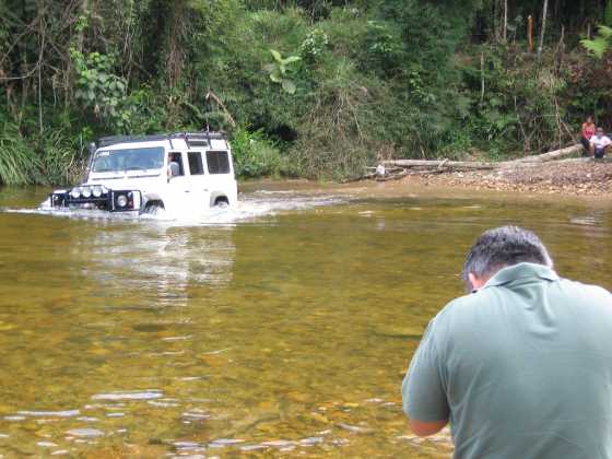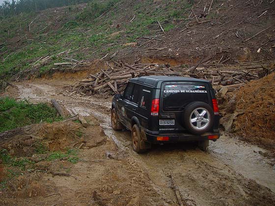 O trator passa sobre as madeiras recém-arranjadas e obviamente quebra tudo... atrás dele, vem outra surpresa... um caminhão carregando várias toras de madeira, desce totalmente descontrolado a estradinha em nossa direção... gritaria daqui e dali, o caminhão passa despinguelado por nós, arrebenta mais a passagem, e ficamos nos olhando sem entender nada...que cena dantesca ! Apesar da "arrumada" dos malucos, conseguimos passar sem problemas...