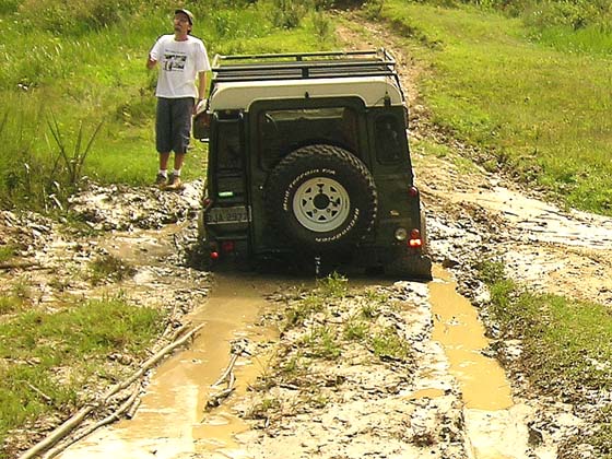 Os pneus 18" slick não ajudam muito, mas nossa heroica DJ promete novidades em breve... aguardem ! he he... Becker vem em seguida, atafuiando firme no atoleiro, mas saindo no gunicho nos ultimos centrimetros :o)