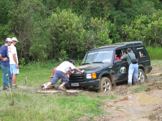 Como a trilha não está dificil, o Cezaretto resolve cavar um buraco usando sua 90-tinha-retroescavadeira... não deu muito certo, mas serviu pra enfeitar o jipe he he...